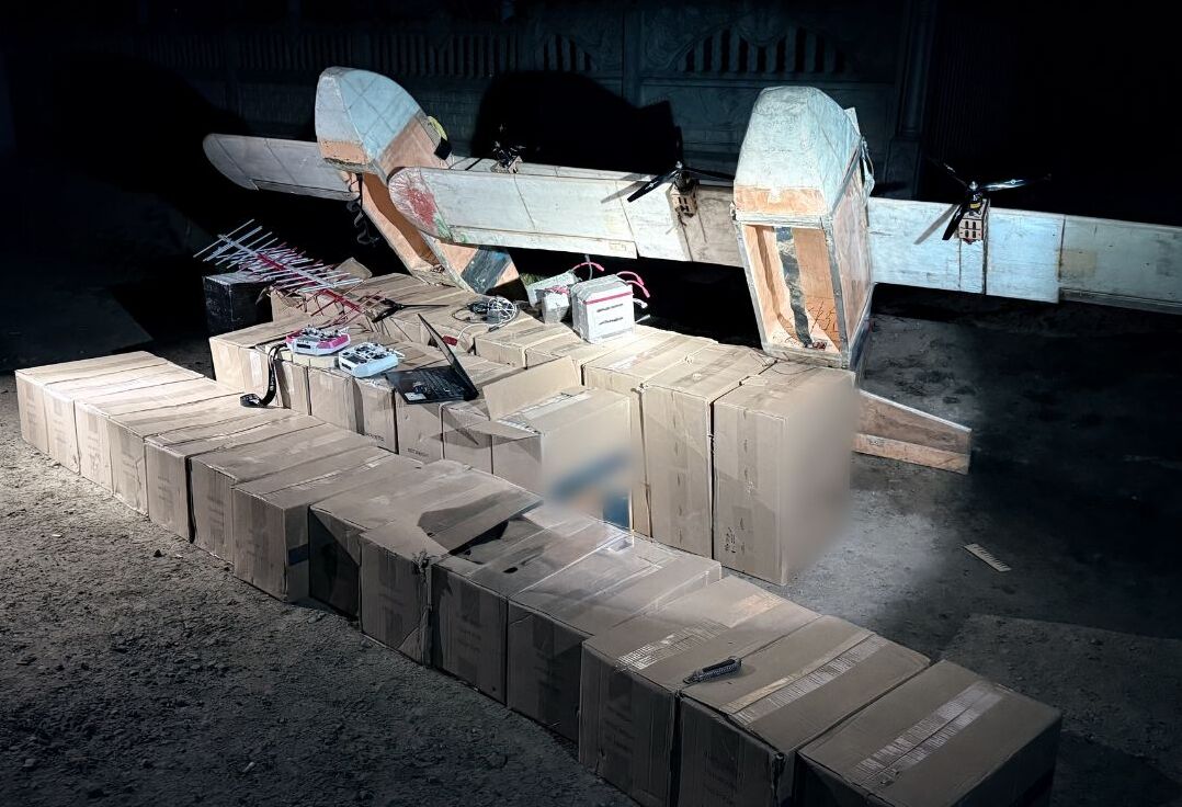 Під час огляду місця події детективи вилучили 34 пакунки сигарет без марок акцизного податку, 2 безпілотні літальні апарати та пускову установку.