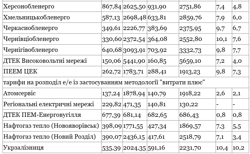 Водночас, для другого класу напруги споживачів найвищий тариф на розподіл встановлений для "ДТЕК Донецькі електромережі" – 3 764,28 грн за МВт-год, найнижчий – для "ДТЕК Київські електромережі" – 1 003,12 грн за МВт-год.
