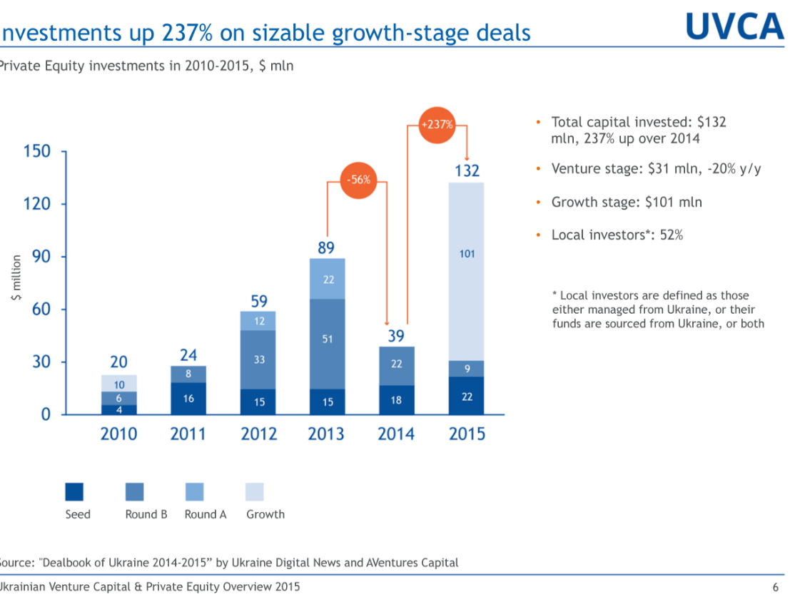 В 2015 году рост инвестиций в украинский ИТ-сектор вырос на 237%. Почти половина всех сделок была заключена с участием международных фондов.