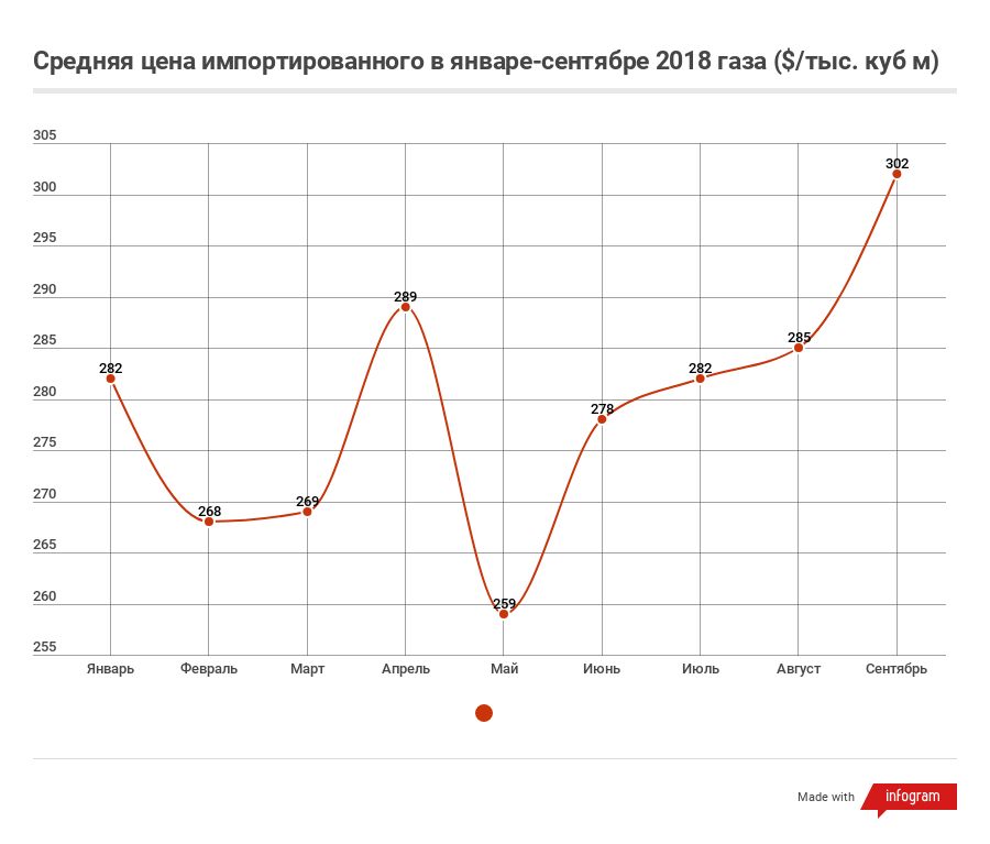 В третьем квартале цены на газ в Европе росли каждый месяц. Если в июне газ в Украину импортировался по средней цене $282 за тыс. куб м, то в сентябре цена выросла до $302 за тыс. куб м.