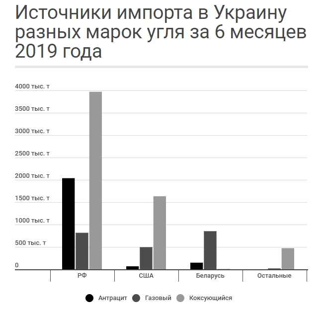 Примечательно, что в 2019 году практически не было завоза угля из дальнего зарубежья, что наблюдалось в прошлые годы. Лишь энергохолдинг ДТЭК Рината Ахметова растаможил около 2 тыс. тон антрацита из ЮАР. Это мизер в сравнении с общими объемами импорта.