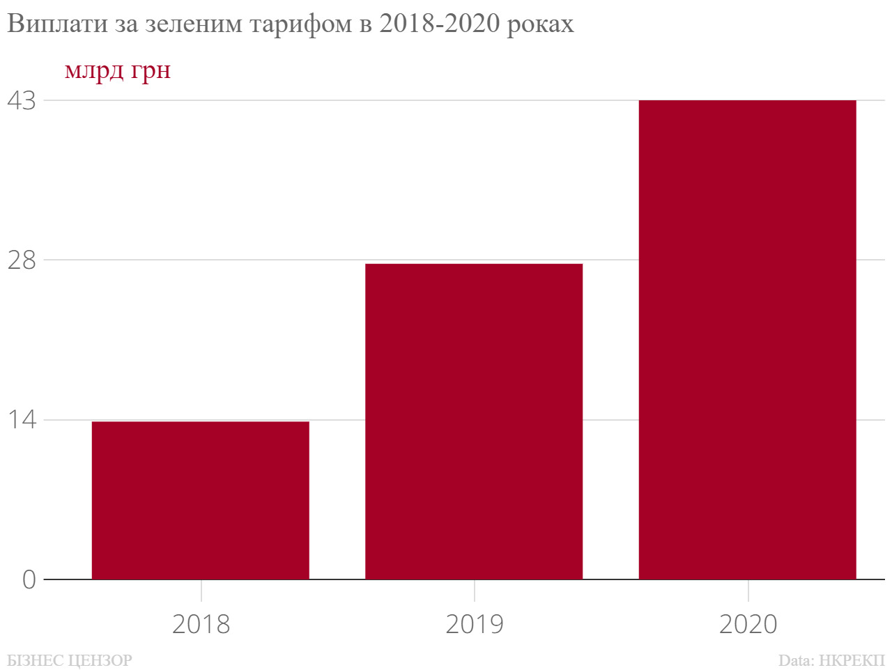 Ця сума на 52% більша від обсягу коштів, що будуть сплачені за зеленим тарифом в 2019 році - 28 млрд грн. В 2018 році виробники ВДЕ отримали за зеленим тарифом 14 млрд грн.