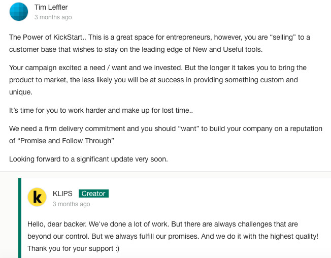 Але те, що відбувається на сторінці компанії на KickStarter схоже на абсолютно іншу реальність. Тисячі коментарів від обурених інвесторів— сплачені давно набори конструкторів так їм і не дійшли.