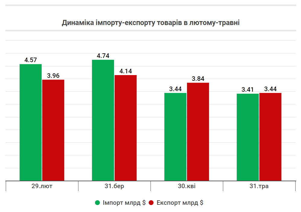 В докарантинний період Україна імпортувала товарів більше, ніж продавала на експорт. Карантин перевернув ситуацію – обсяги імпорту впали нижче за обсягів експорту. Це позитивно вплинуло на сальдо торгового балансу.