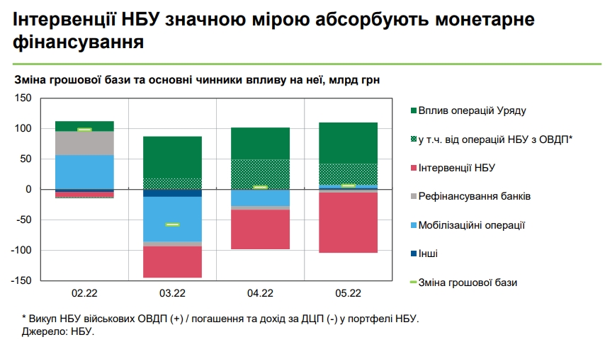 Викуп НБУ військових облігацій за рахунок емітованої гривні - один з основних каналів фінансування дефіциту бюджету. В травні НБУ викупив військових ОВДП на 50 млрд грн, а загалом з початку війни - на 120 млрд грн.