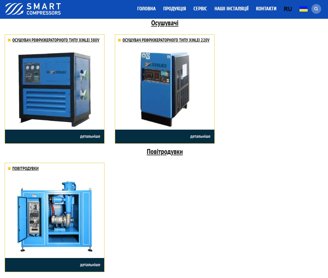 Smart Compressors – це бренд ще однієї української компанії власників "Індастріал Сістемз" – ТОВ "Смарт Компресорс". Втім, про виробництво власної продукції на її сайті також нічого знайти не вдалося. Компанія спеціалізується на імпорті обладнання, але переважно – китайського. Принаймні на її сайті пропонують компресори лише тієї ж китайської Xinlei та одну модель повітродувки, виробника якої чомусь вирішили приховати.