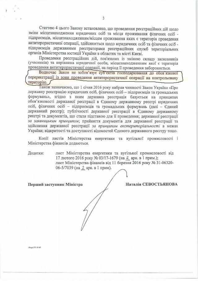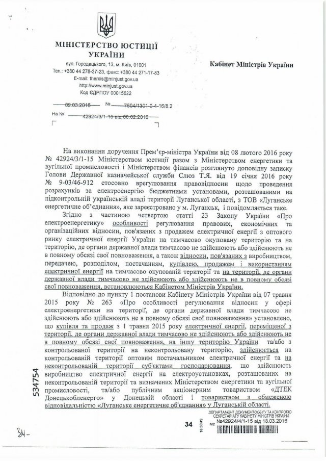 Но правительство не отзывалось, а проводило крайне странную политику в этом вопросе. Для того, чтоб урегулировать и узаконить поставки электроэнергии в так называемую «ЛНР», в мае 2015 года Кабмин принял постановление №263, которым обязал ЛЭО поставлять электроэнергию на НКТ. ЛЭО долго не подписывало новый договор разницы перетоков с Энергорынком, понимая, что ничем хорошим это не закончится. Лишь в конце августа 2015 года этот договор был подписан - под мощным давлением власти. Сдалось ЛЭО еще и благодаря гарантиям, которые были даны предприятию в Минэнерго принятием приказа №440 - согласно этому документу, если на НКТ не будут оплачивать электроэнергию, то можно поставки прекратить.