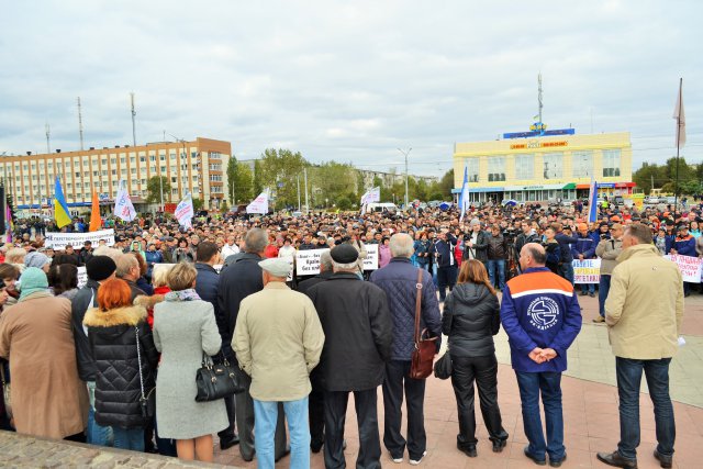 Как результат, начало октября становится особенно жарким. На акцию протеста, которая прошла 3 октября в Северодонецке, по различным данным, пришли от 1,5 до 3 тысяч сотрудников различных предприятий области, активистов и общественников, простых горожан. Большую часть демонстрантов составили сотрудники Луганского энергетического объединения и крупнейшего предприятия химической промышленности - северодонецкого завода «Азот». Также участие в акции приняли коллективы «Луганскгаза», лисичанского стеклозавода «Пролетарий», шахт «Лисичанскуголь» и «Первомайскуголь», областного профсоюза строителей.