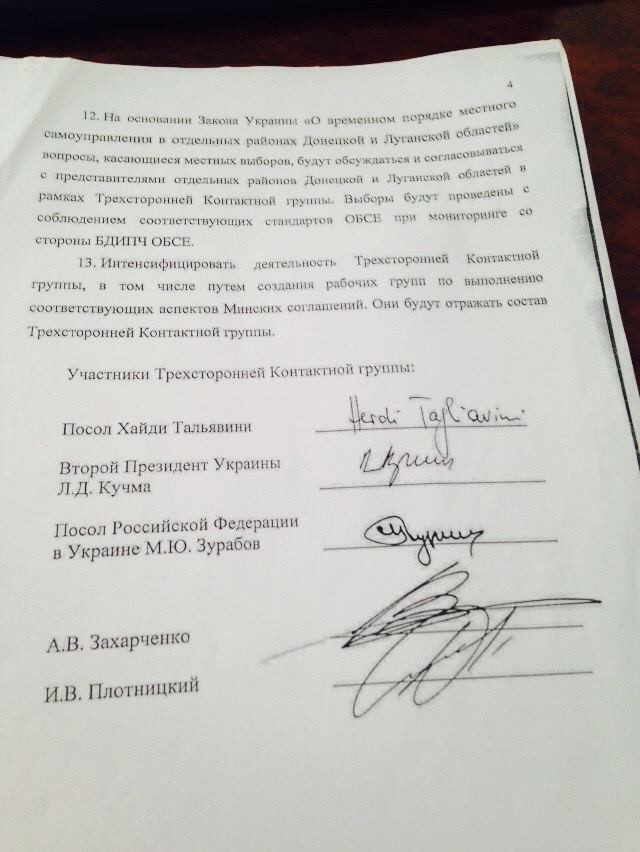 9) Захарченко и Плотницкий не является подписантами Минских протоколов! Какой у них статус и почему в документах их подписи?