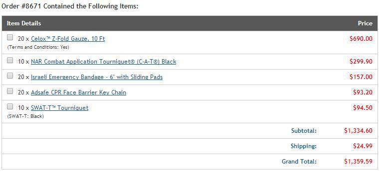 These funds have already been used to order Celox, tourniquets, bandages, etc. on the amount of U.S. $ 2,215