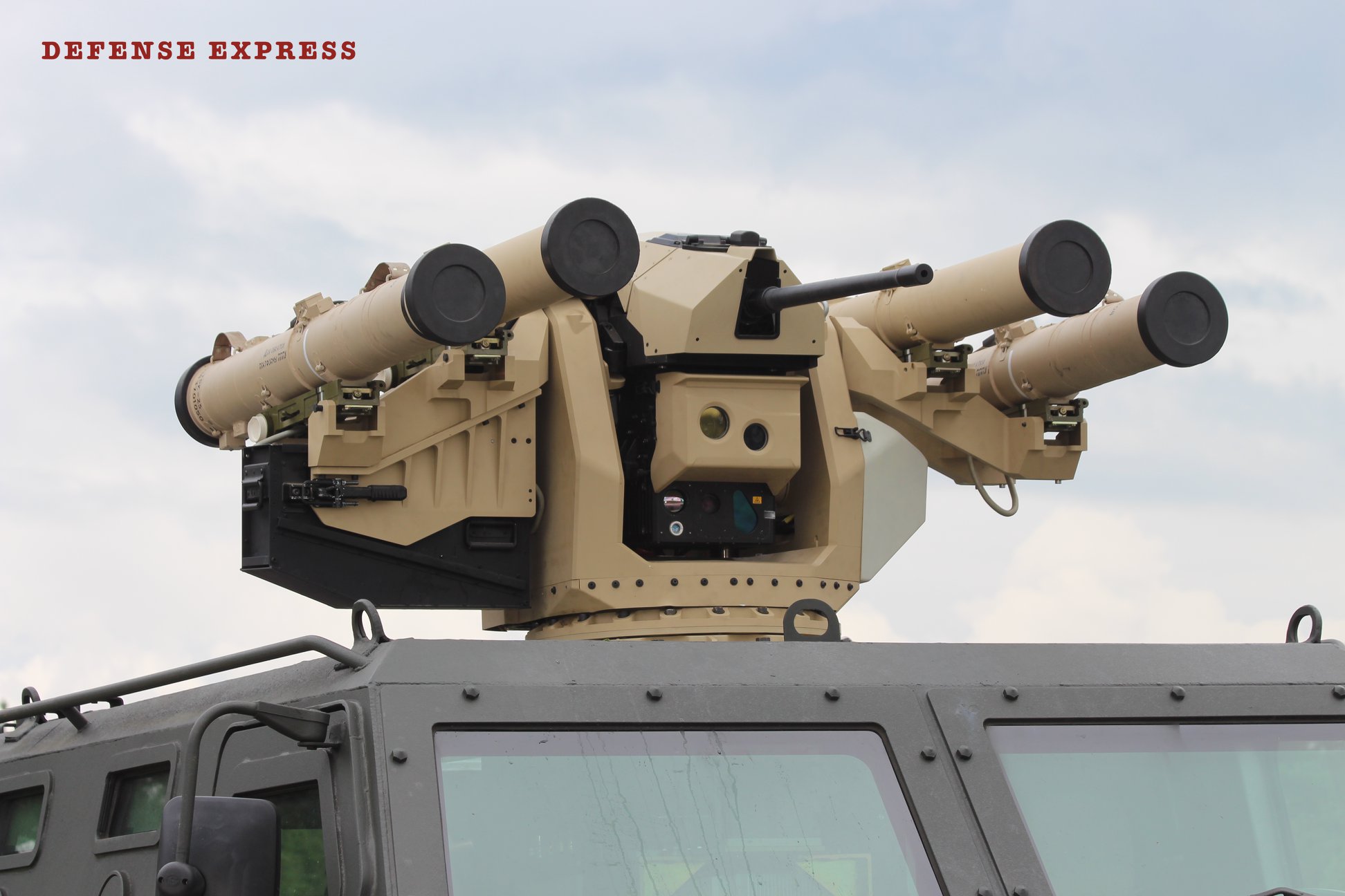 The presented turret designed by Aselsan can be equipped with various types of machine guns while its main weapon is Ukrainian-made Barier anti-tank missile system with extended battle load-out.