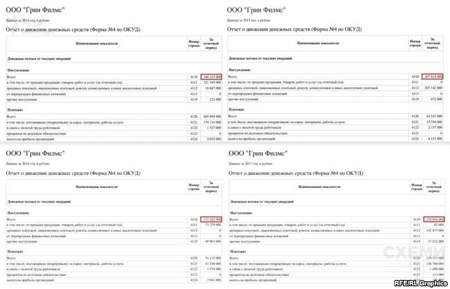 Journalists have listed three Russian companies engaged in movie and TV production: Vaysberg Pictures, Platinumfilm and Green Films. The founder of all three is Cyprus Green Family LTD company.