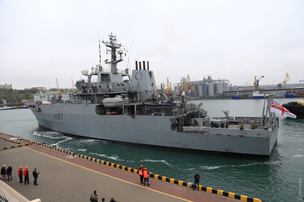 This morning, the British reconnaissance ship HMS Echo H87 entered the Odessa port. At about 10 o'clock in the morning it moored at the 18th berth of the sea terminal.