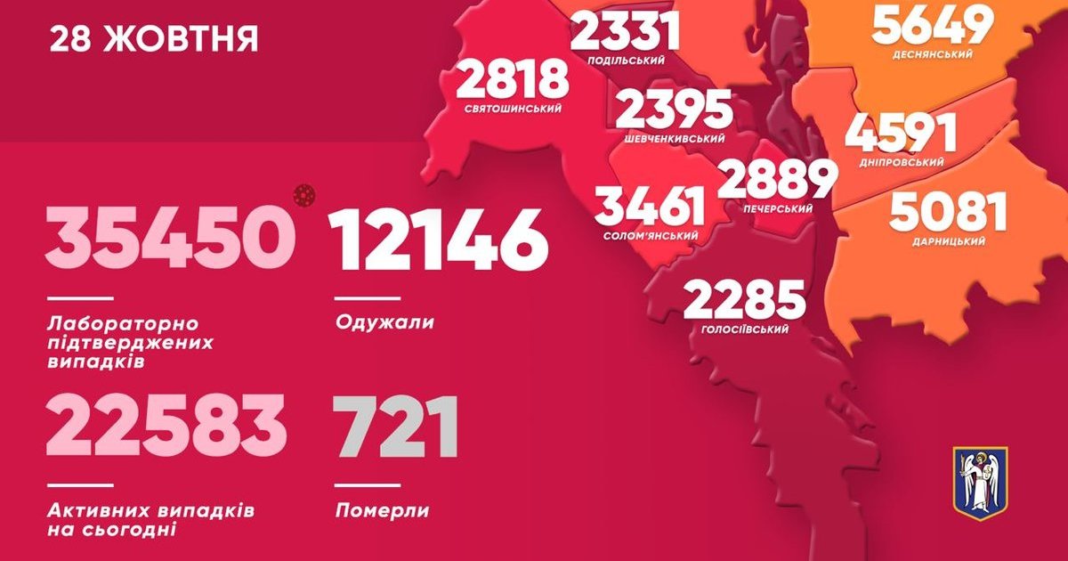 "Over the past day, 563 people have contracted coronavirus, 15 people have died. In total, 721 Kyiv residents have died from coronavirus," Klitschko said at a briefing on October 28.