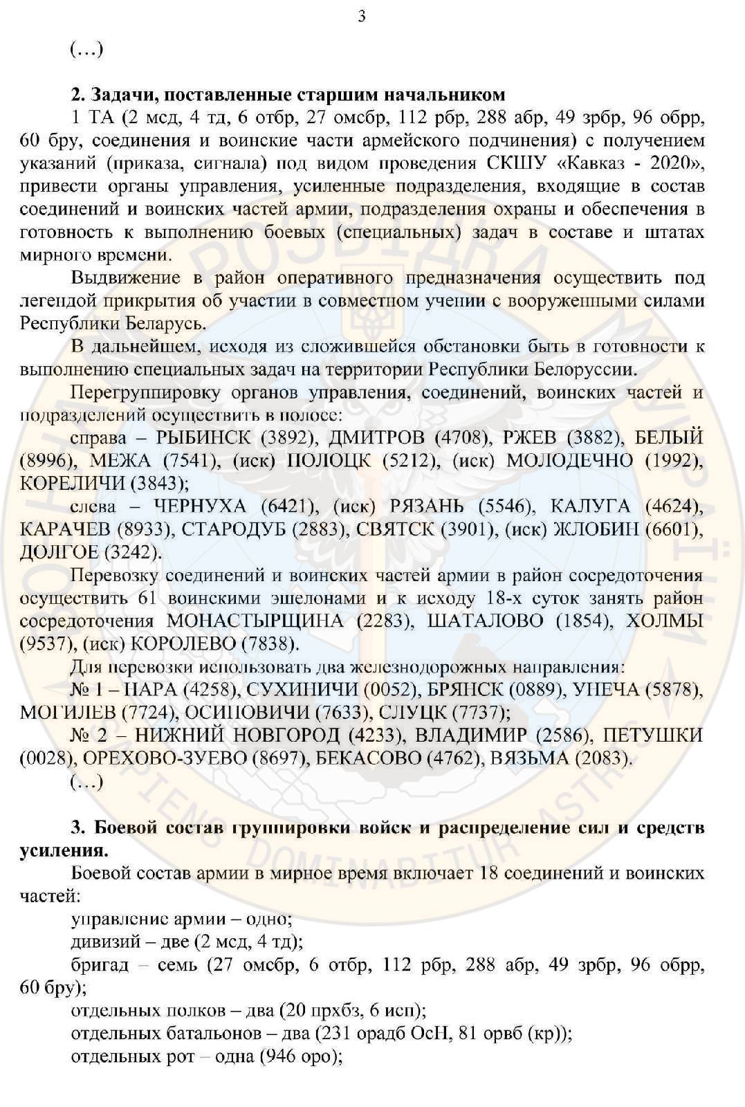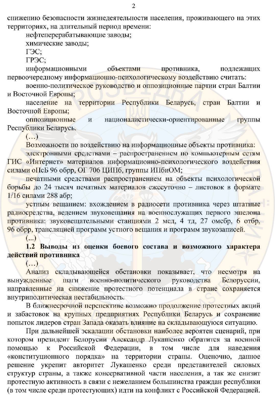 The document in the style of the Russian Federation analyzed the military-political and information situation of the country, identified and listed objects that are "subject to immediate psychological and informational impact." According to the senior commander, the task was to bring troops into the country according to the legend of "joint exercises with the armed forces of the Republic of Belarus."