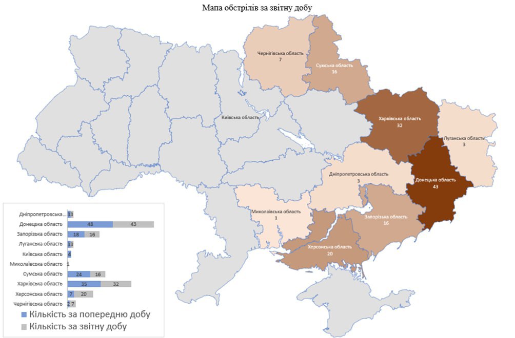 "From various types of weapons (mortars, tanks, artillery, MLRS, UAVs, tactical aircraft) 141 settlements and 75 infrastructure objects were fired upon.