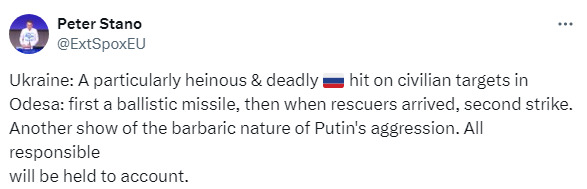 The EU responded to the Russian occupation forces’ missile attack on Odesa, which killed and injured dozens of people.