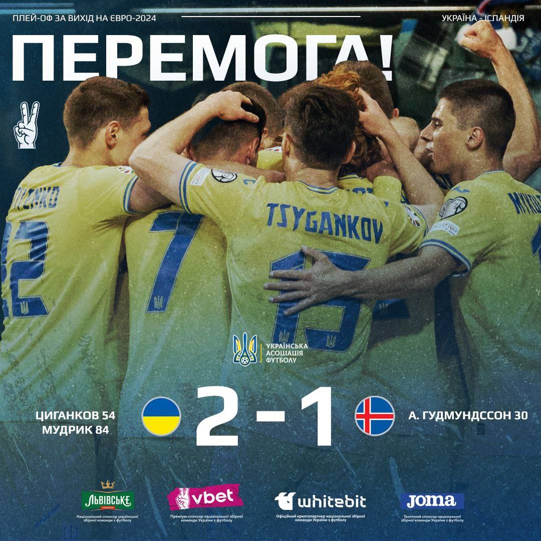 Ukraine’s national football team won a strong-willed 2-1 victory over Iceland and qualified for the 2024 European Championships.