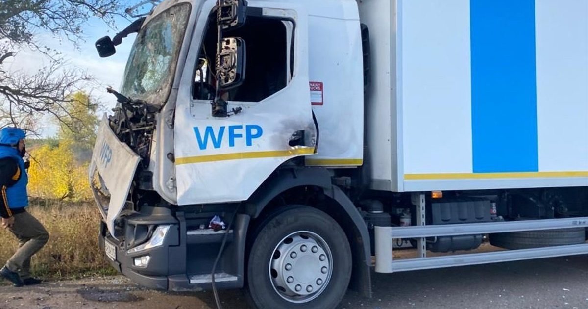 Let us remind you that on the morning of October 14, Russian forces attacked a humanitarian mission in the Kherson region, firing on UN humanitarian aid trucks with drones and artillery. One vehicle was burned down, another was seriously damaged. Two managed to escape the attack. It is a miracle that no one was injured.
