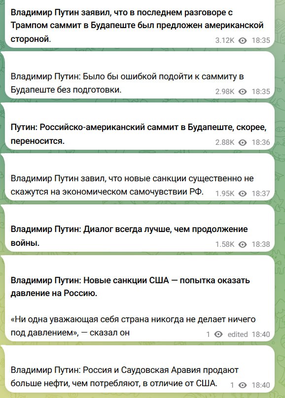 According to Putin, the Budapest summit with Trump was proposed by the American side, and "it would be a mistake to approach the meeting without proper preparation."