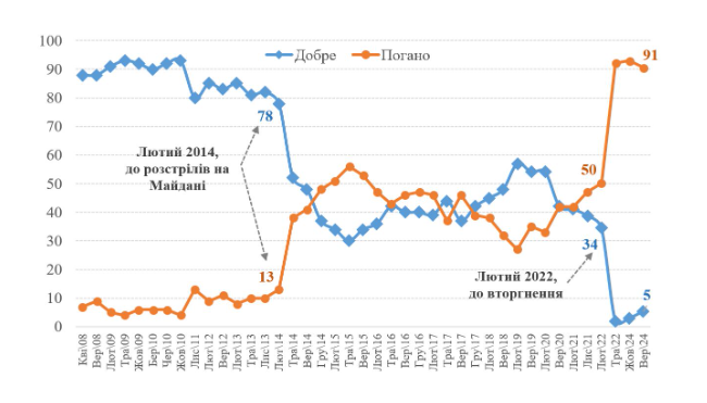 91% of Ukrainians have negative attitude towards Russia, - KIIS poll. INFOGRAPHICS