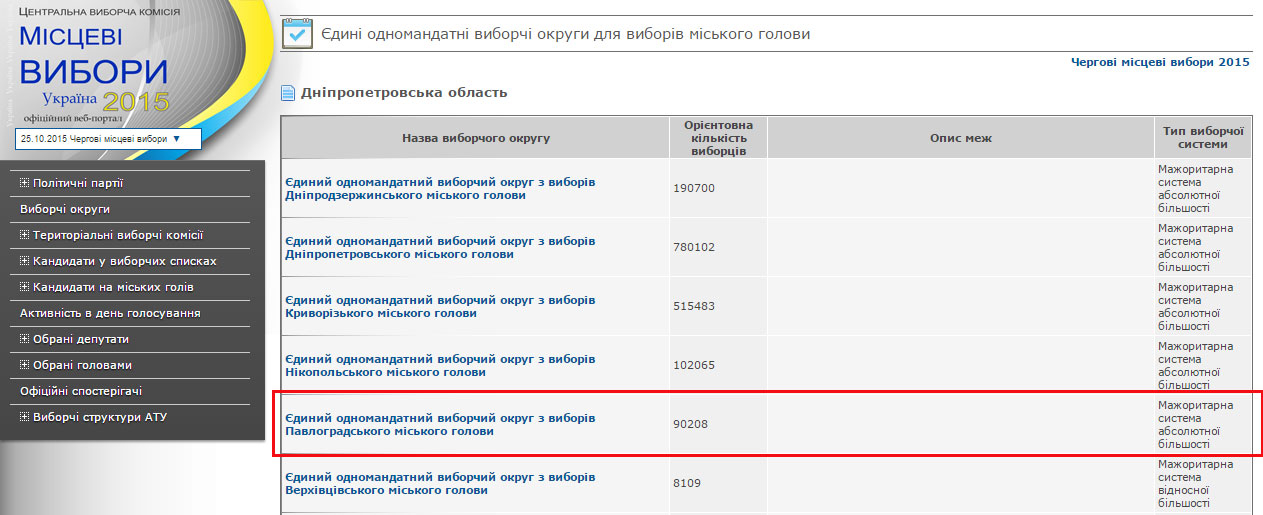 Yesterday, the Central election committee decided to cancel repeated voting in Pavlohrad, saying there were fewer than 90,000 voters in the constituency.