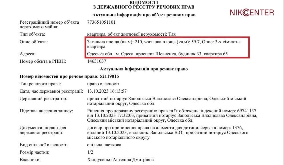The official declared an apartment in Odesa with an area of 210 square metres (33 Shevchenko Avenue). According to agencies, the market value of such housing is approximately 14 million hryvnias. Based on journalists’ calculations, Khandusenko managed to buy it at a price 14 times lower.
