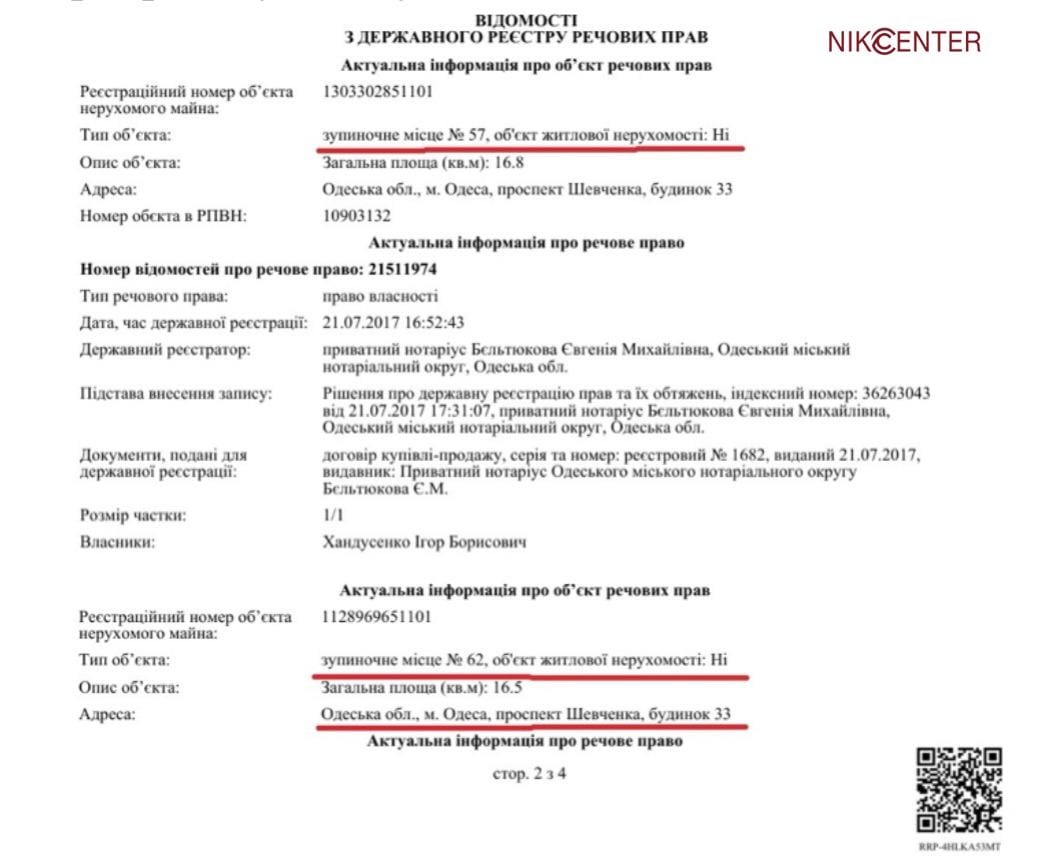Also, according to the declaration, in 2023, Khandusenko purchased premises with an area of over 70 square metres for almost 700,000 hryvnias. However, this property was no longer listed in the declaration submitted for 2024.