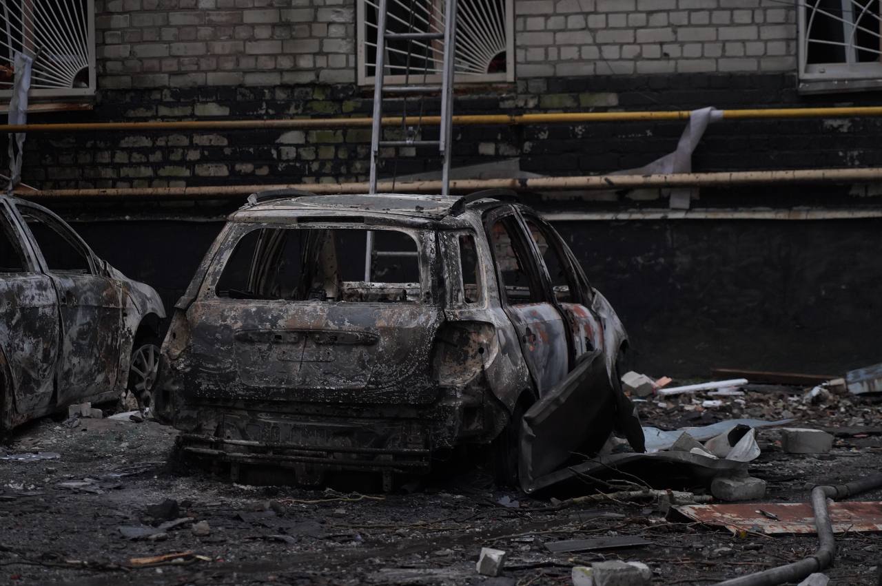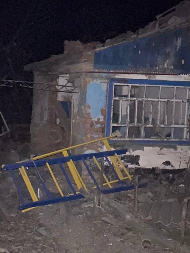 A two-storey media building, a transport company, a private enterprise, an administrative building, a service station, shops and kiosks, a catering establishment, infrastructure, six apartment blocks, garages and more than 20 cars were damaged (another three cars were destroyed).