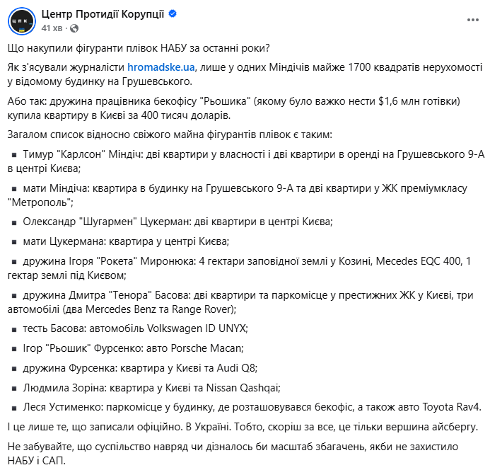 According to Censor.NET, this was reported by the Centre for Combating Corruption (CCO) with reference to an investigation by Hromadske.