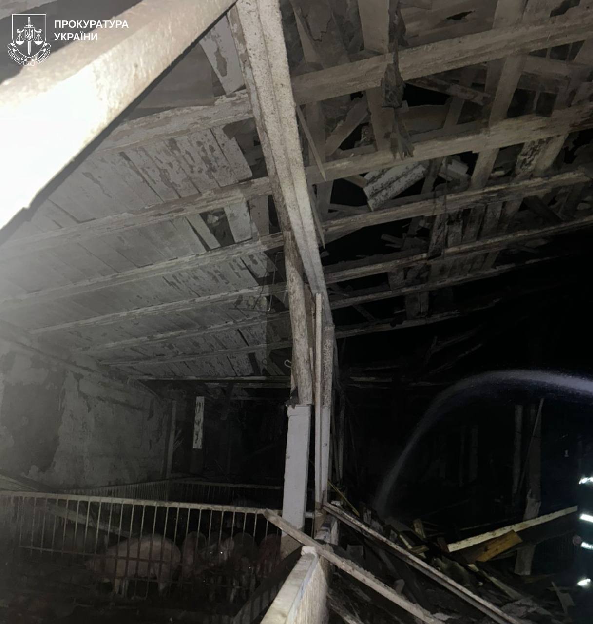 At about 11:00 p.m. on November 23, four Russian attack UAVs struck an agricultural firm in Chuhuiv district, sparking a fire. More than fifty pigs were killed and buildings were damaged. A female security guard suffered an acute stress reaction.