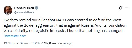 Tusk to allies: NATO was created to protect West from Soviet aggression, i.e. from Russia
