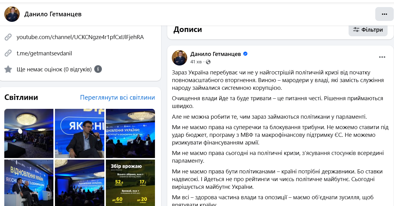 This was stated today from the rostrum of the Verkhovna Rada and on his Facebook page by MP Danylo Hetmantsev from Servant of the People, reports Censor.NET.