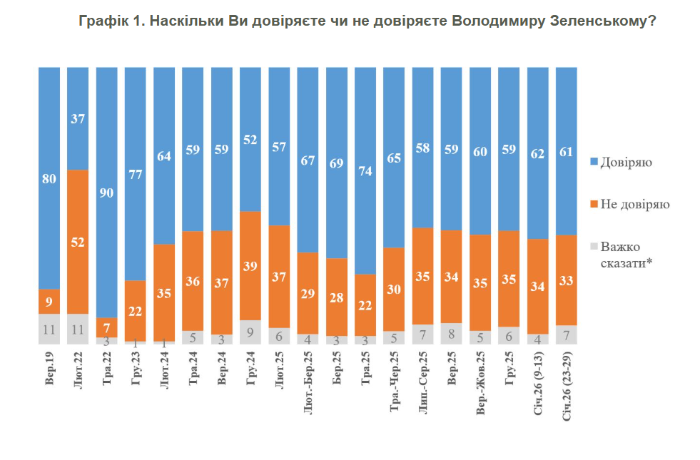 61% of Ukrainians trust Zelenskyy, - KIIS. INFOGRAPHICS