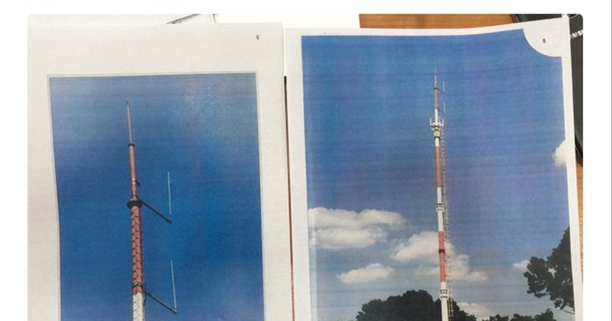 The witness claims at least two people and a 6-7 meters ladder with hooks is required to do that. A camo-clad person carrying a machine gun, he says, would not be able to climb the tower.