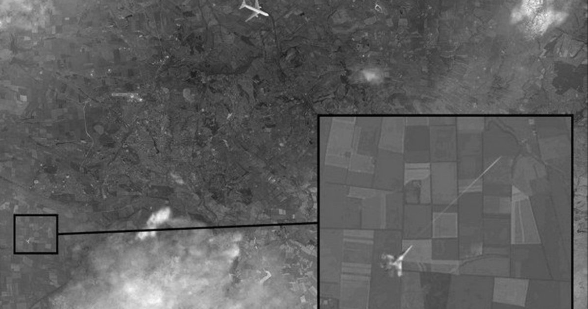 As noted by Eliot Higgins, a former office worker turned blogger, who set up an online investigation website called Bellingcat, the plane would be about four miles long based on the perspective between the camera and the ground, or it would be a normal-sized aircraft that was 300m away from the satellite.