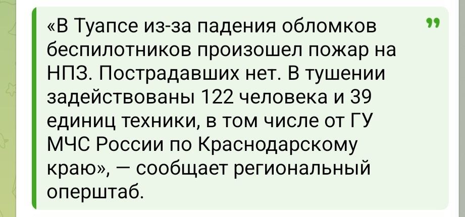 This morning, the Krasnodar Krai Emergency Response Headquarters confirmed that an attack had taken place at the oil refinery.