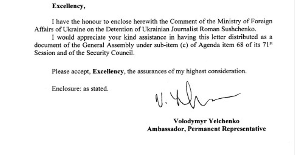 In the first days after Sushchenko had been detained, the Ukrainian Foreign Ministry came up with an official position on the matter that was brought to the attention of the leadership of the United Nations and the Security Council, according to Yelchenko.