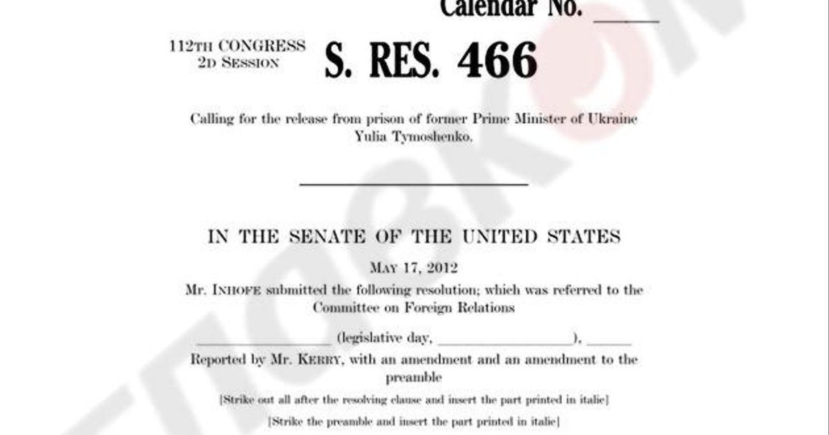 In recent years the US Congress had numerous resolutions registered in regard to Ukraine that called on implementing sanctions to officials because of opposition persecution.