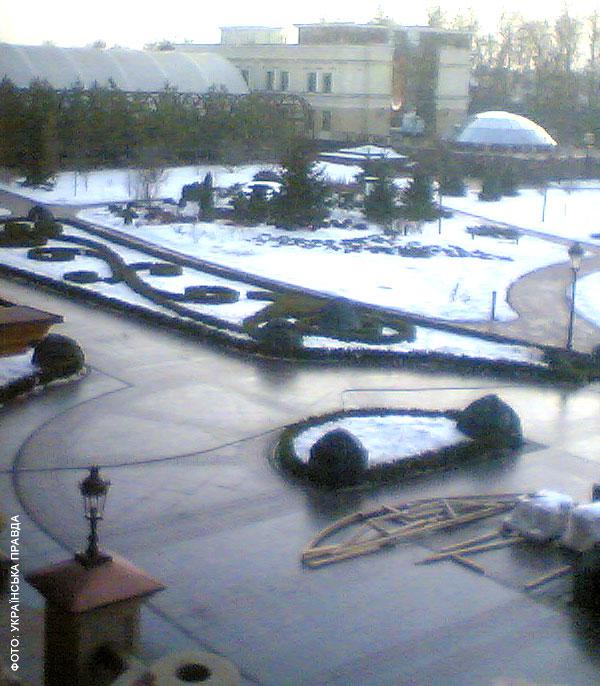 That is the house where Yanukovych lives now (wooden building in the top left hand corner of the picture). According to paperwork, the house belongs to the Tantalit Company controlled by the President's family. Previously the palace was on the balance of the Ukraine Revival charity fund - another front for the "Family". But several years ago the property was transferred to Tantalit which hides its real owners in Lichtenstein with transit through Austria and the UK.