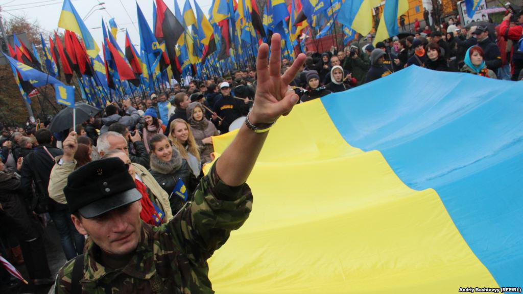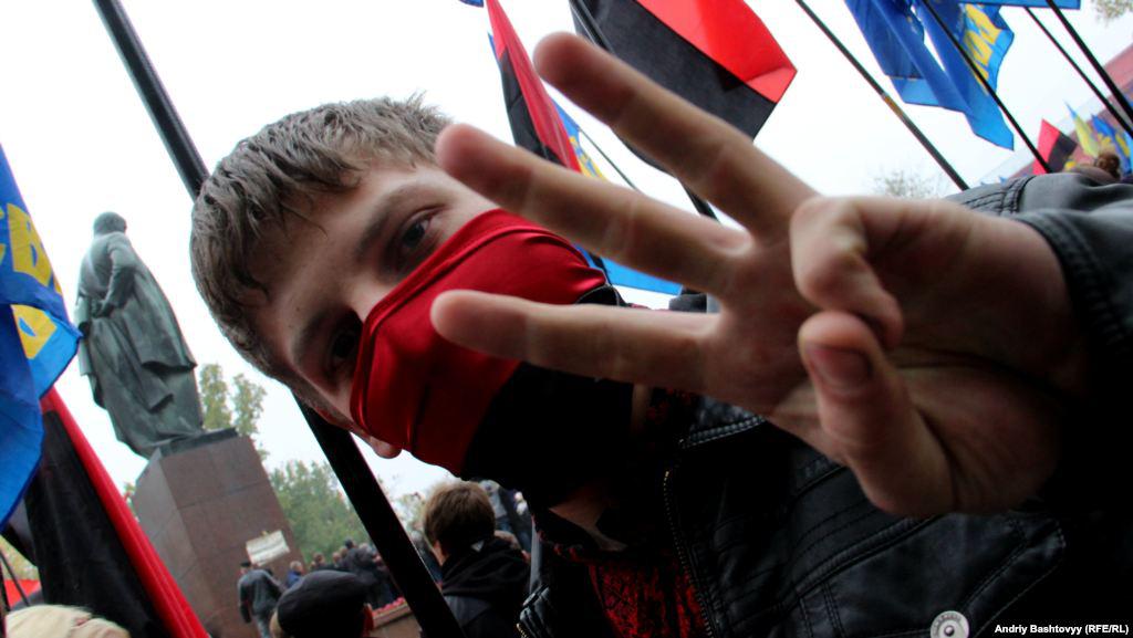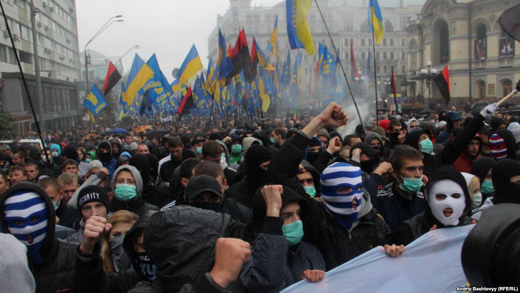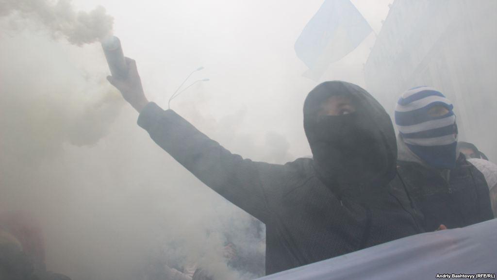 Ukrainian Insurgent Army Commemoration March: Smoke Pellets, Communist and Regions Flag Burning. PHOTOS