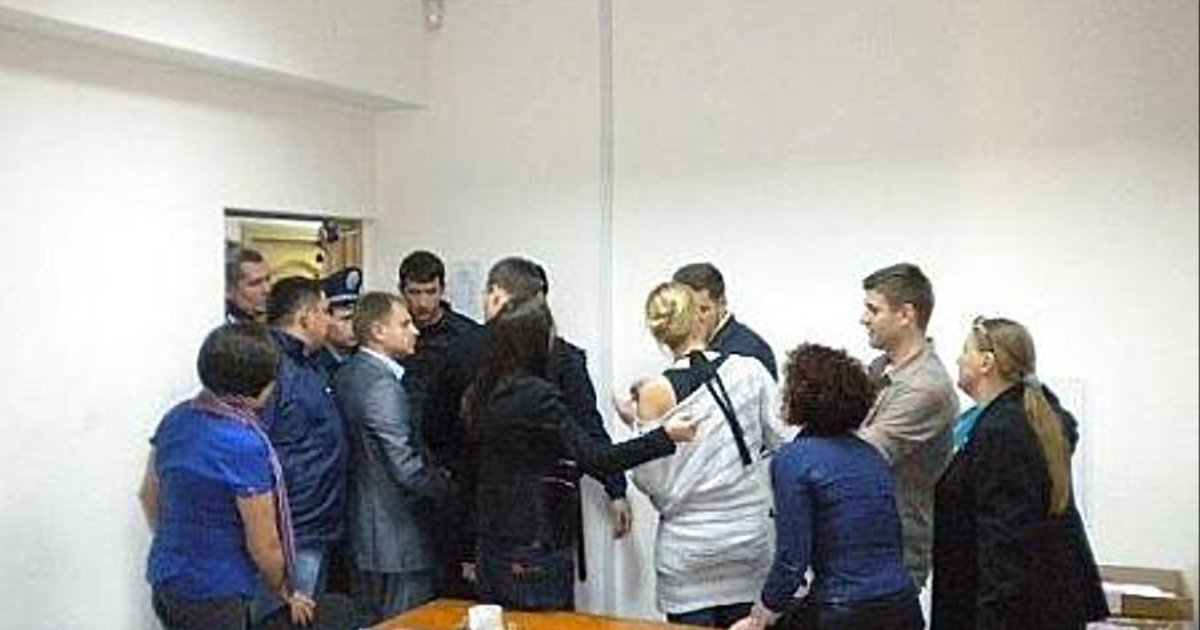 One of Svoboda activists tried push out of a man who introduced himself as a journalist. According to Svoboda the 'journalist' was a representative of candidate Pylypyshyn. The police was called to the room who escorted the conflicting parties out of the room. One of the commission members Helen Nikolayuk said that she got hit in the face during a fight.