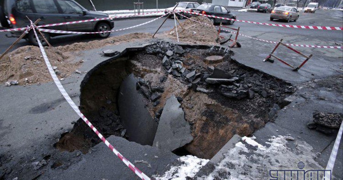Monday, 11 March, in Svшatoshinsky district of Kyiv a huge hole appeared on the roaвs – big enough for a car to fall in.