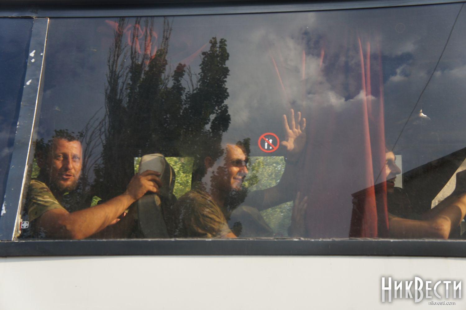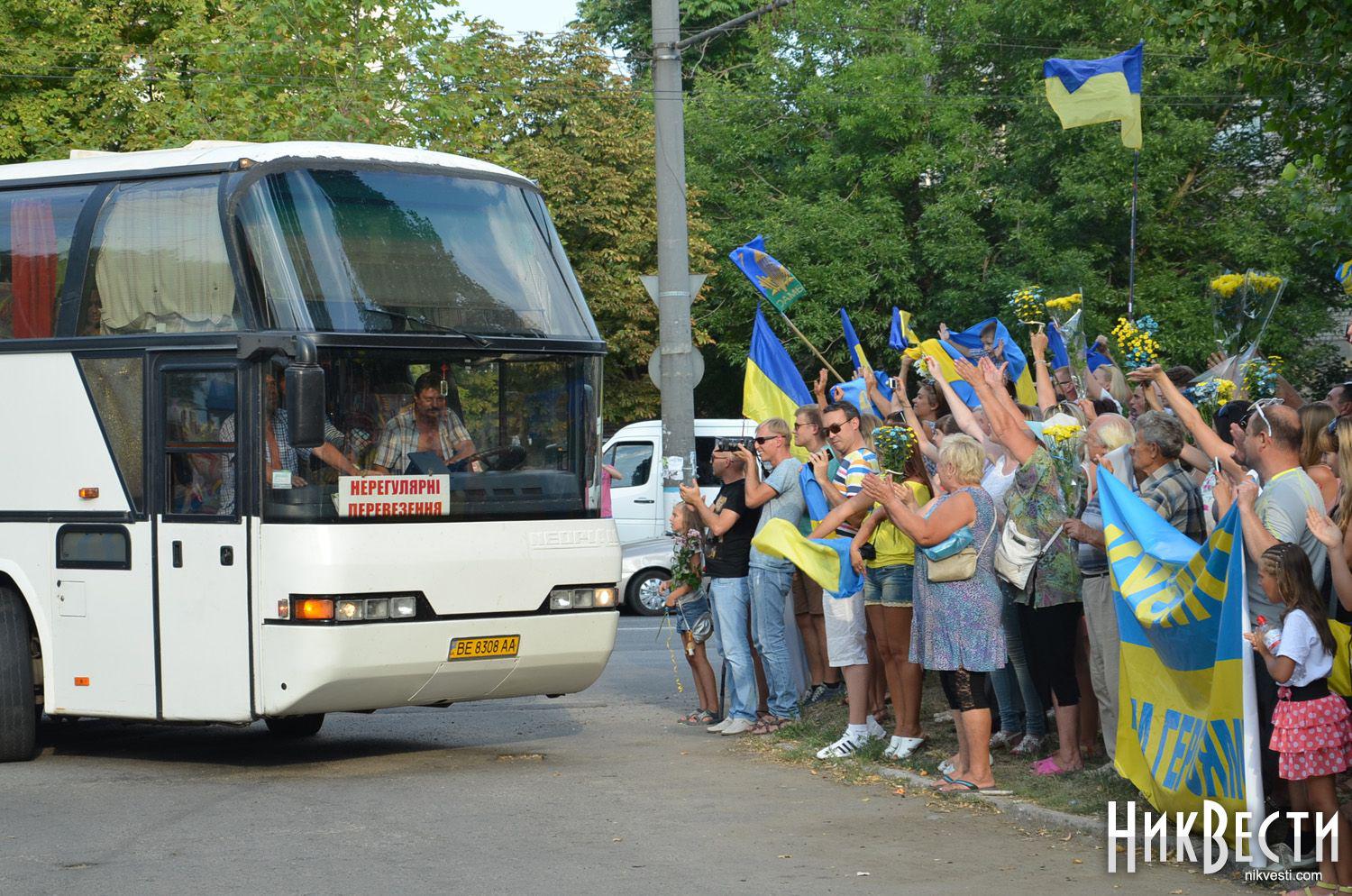 The buses with soldiers are constantly coming. The relatives are meeting the paratroopers with applause, giving them flowers, hugging tightly and kissing.