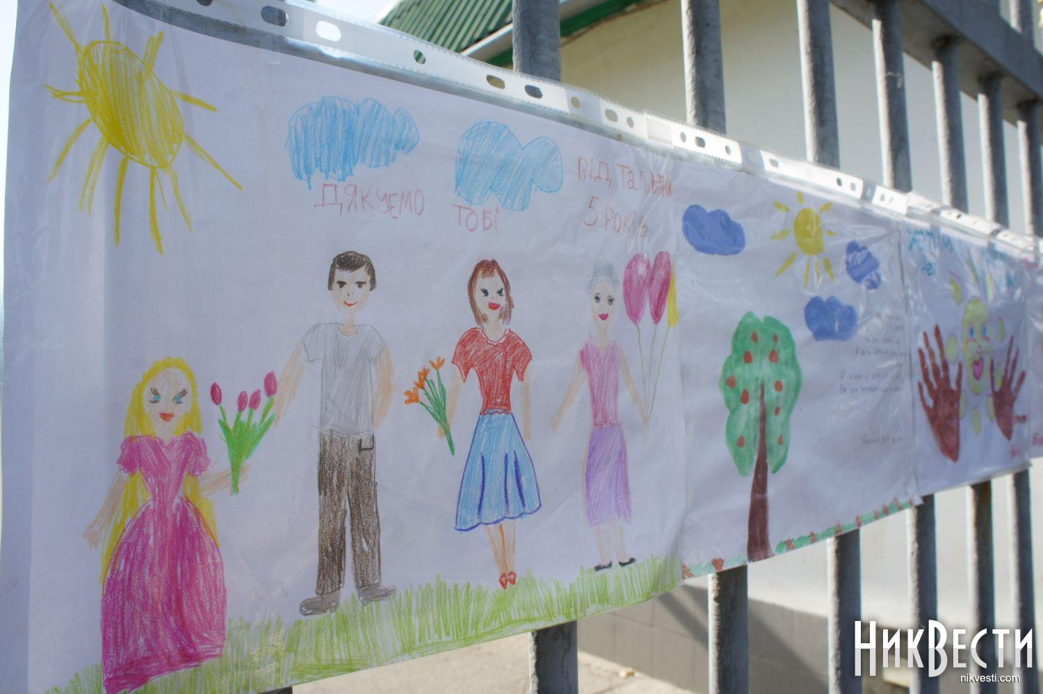 Many of those present were having the national symbols on clothing, holding flowers, Ukrainian national flags or flags of the 79th separate airmobile brigade. The gate of the military unit was decorated with children's drawings. The passing by cars honked to show their support of the servicemen families. Chairman of Mykolaiv Regional State Administration Vadym Merikov, Mayor of Mykolaiv Yurii Granaturov, head of the regional council Taras Kremin were noticed among those present.