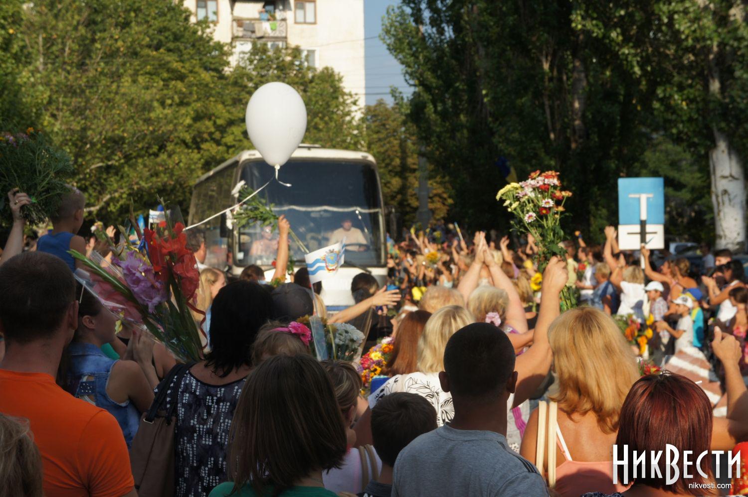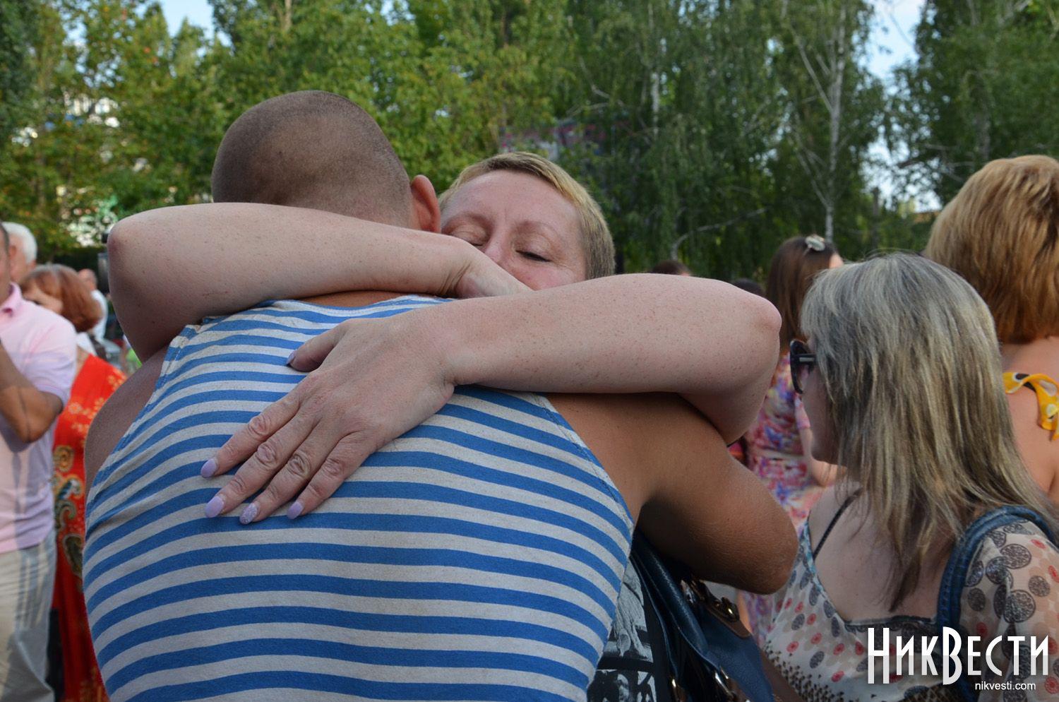 More than a thousand Mykolaiv locals have come to the security gate house of the military unit # 0224 in Mykolaiv, where the 79th separate airmobile brigade is deployed, to meet the paratroopers who had returned from the area of anti-terrorist operation in the east of Ukraine.