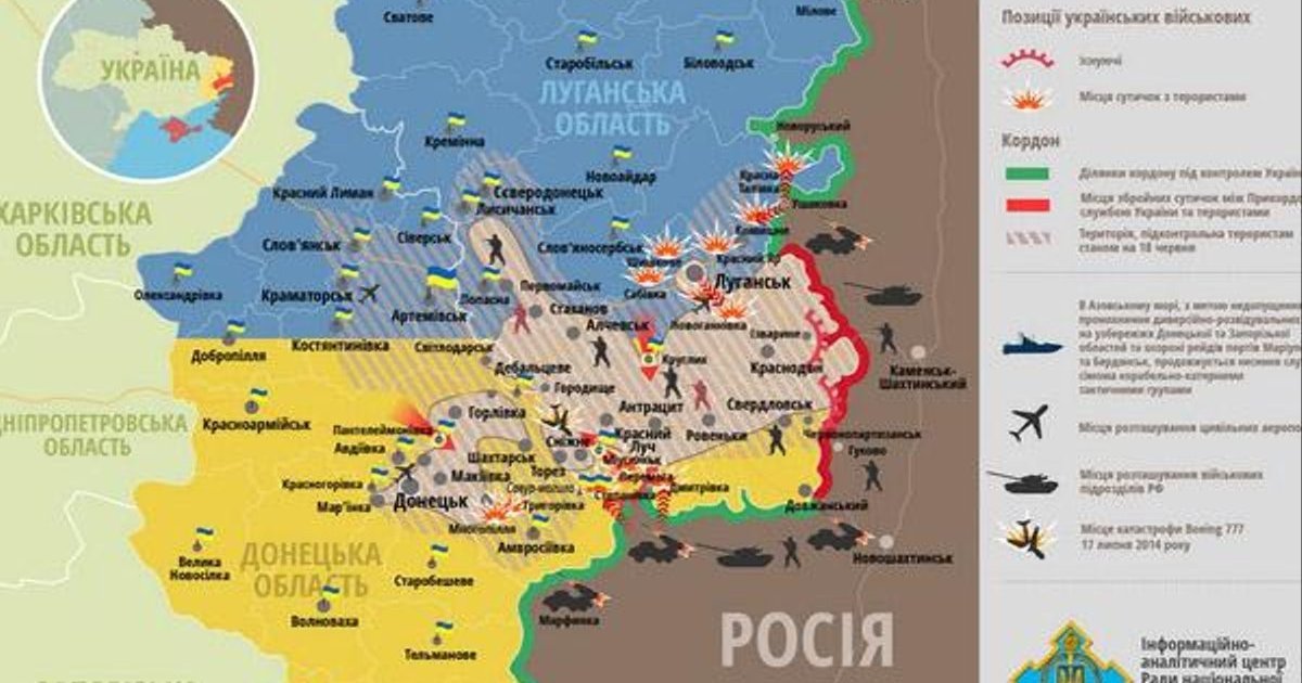 According to the National Security and Defense Council (NSDC) operative data, the confrontation continues near Donetsk and Luhansk, as well as to the north of Luhansk, closer to the border. The Army is also fighting the terrorists in 12 other settlements.