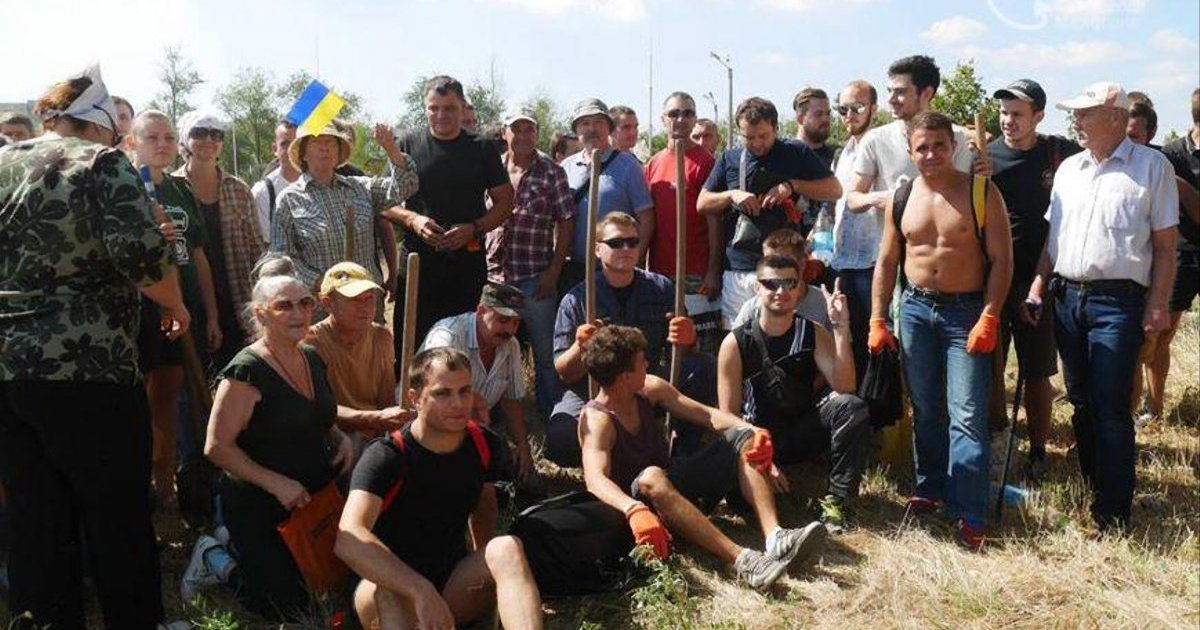 People responded to the call at yesterday's rally "For Peace" which urged the residents of the city to come to the checkpoints and dig the trenches to strengthen the defense of the city, Censor.NET reports citing the local website 0629. Volunteer organizations association "Novyi Mariupol" with the participation of representatives of the charitable organization "Respublika "Piligrim" provided transportation, gloves and shovels to volunteers.