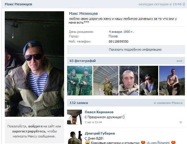 But his Pskov comrade Maxim Mezentsev left behind his little daughter and wife Maria, who told about husband's death in the network.