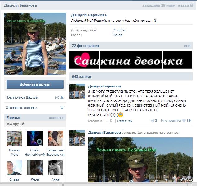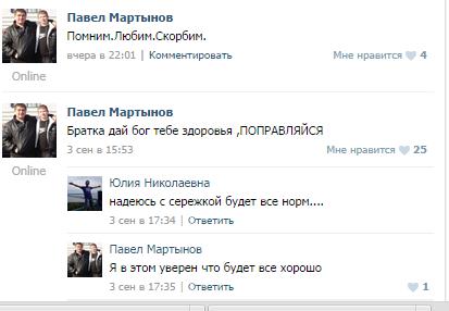 Messages of his friends show that Sergey came back to Russia with grave wounds. On Sept. 3 Sergey's friend Pavel Martynov posted "Get well soon!" But next day the wishing was changed into condolences.